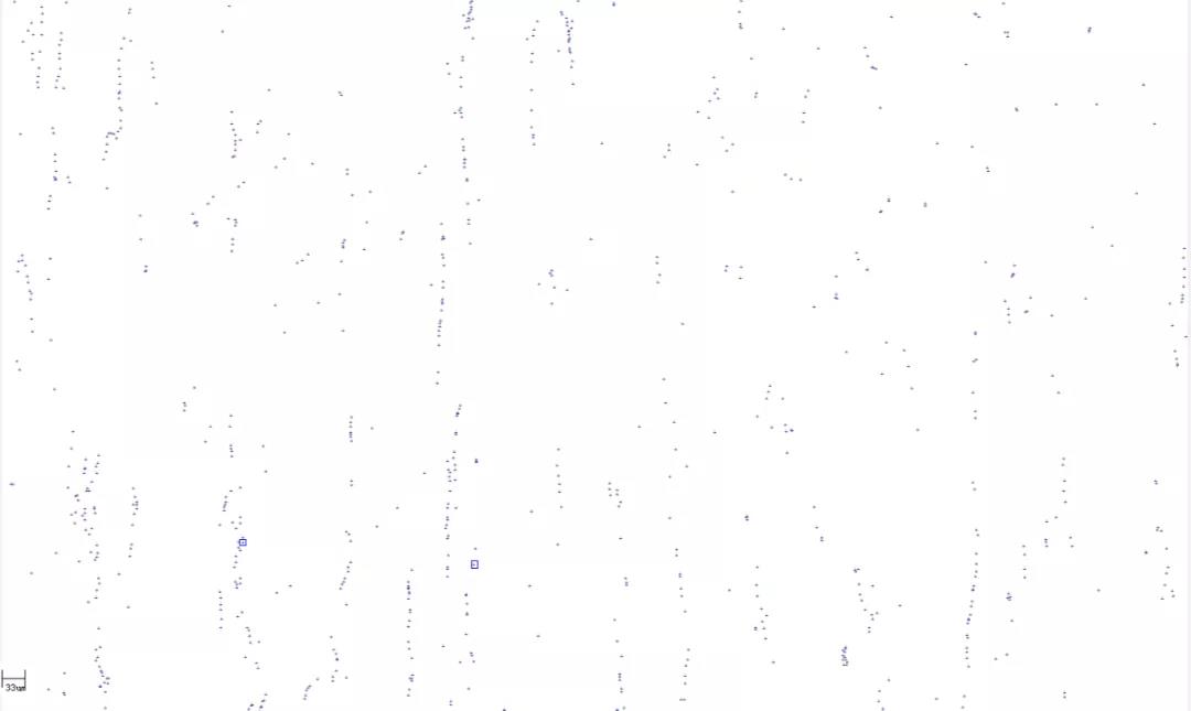 通过结果分析可以看出,采集夹杂物最小尺寸为1μm,在保证每个点至少有60000个计数的基础上,该区域共831个颗粒,扫描时间只需要25min,保证准确率的基础上效率非常高。通过OTS自带的标准库自动将夹杂物进行分类,结果显示大部分的析出相为NbC(N),平均尺寸大约为3微米,分布不是非常均匀,有的区域分布有一定的方向性,呈条状分布,因此为了提高强度和塑性,还需要进一步改善工艺,降低微米级NbC(N)的含量,同时使其更均匀的分布。